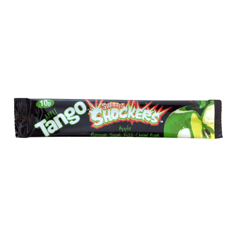 Tango apple flavoured chew bar shocker, a sour apple fizz chew bar with sherbet shockers hidden inside.