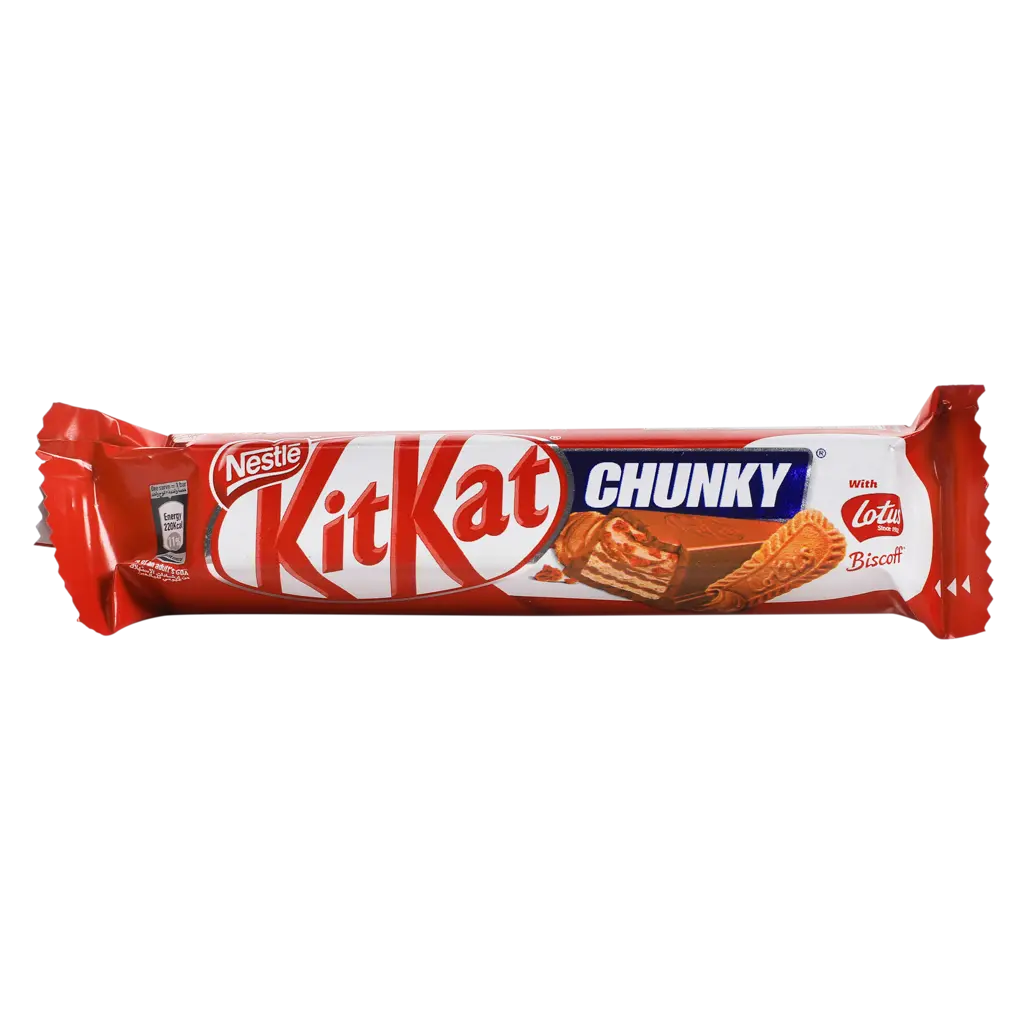 Indulge in a playful twist with KitKat Chunky and Lotus Biscoff! This delightful 41.5g treat fuses the classic crunch of KitKat with the spicy caramel crunch of Lotus Biscoff, creating a deliciously unexpected flavour combo. Perfect for a cheeky snack that’s both crunchy and smooth, it’s a fun way to brighten your day with every bite.